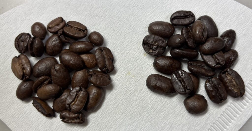 焙煎深度、色のばらつき(均一に焙煎出来ていない)