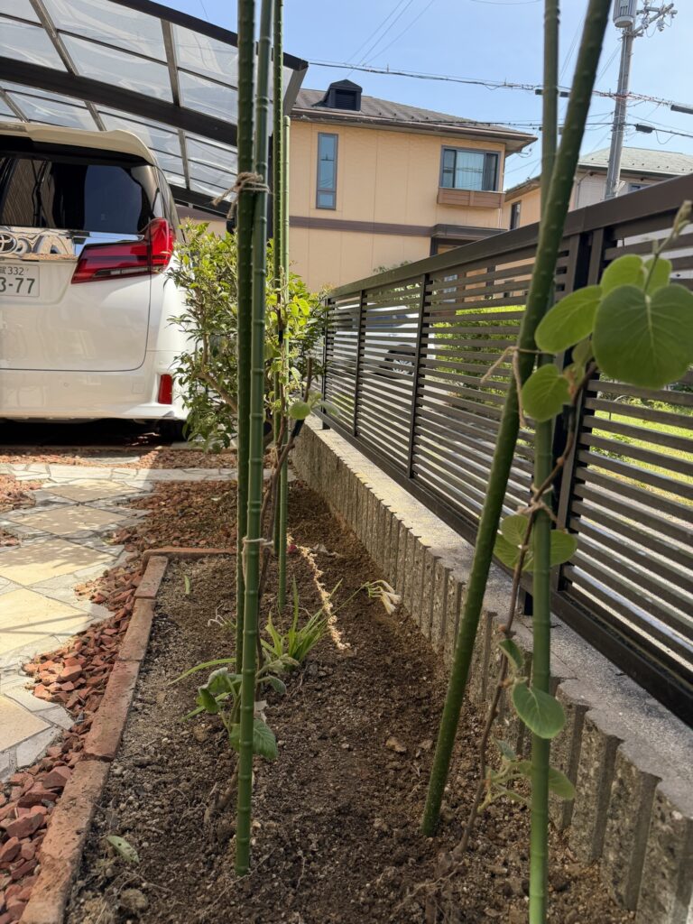 つるが伸びてきたら棚を作る予定です